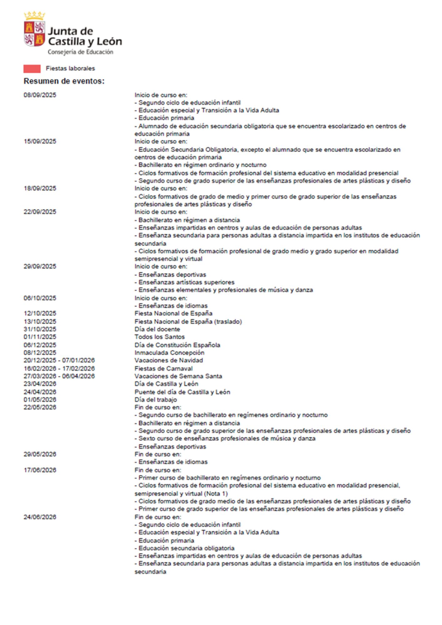 HORARIO » CALENDARIO ESCOLAR 2025 -2026